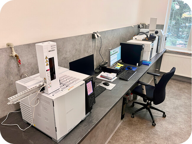 Plynový chromatograf s hmotnostním spektrometrem GCMS a plynový chromatograf GCFID