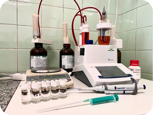 Titrátor pro stanovení vody v organických látkách dle Karl Fishera